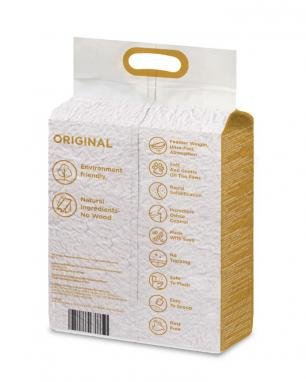 • SUDĖTYJE NĖRA MEDIENOS. Šiam kraikui gaminti nenaudojama mediena, tad nekertami medžiai ir taip saugoma gamta. Dėl išskirtinių sudedamųjų dalių kraikas nedulka, tad jis yra saugus tiek augintiniams, tiek jų šeimininkams.